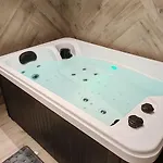Staying at this accommodation, guests have access to a seating area equipped with air conditioning. The apartment features parquetry flooring. To ensure your comfort, a spa bathtub, a hot tub, and a separate toilet are provided at the property. Dressing gowns are also included in the bathroom.